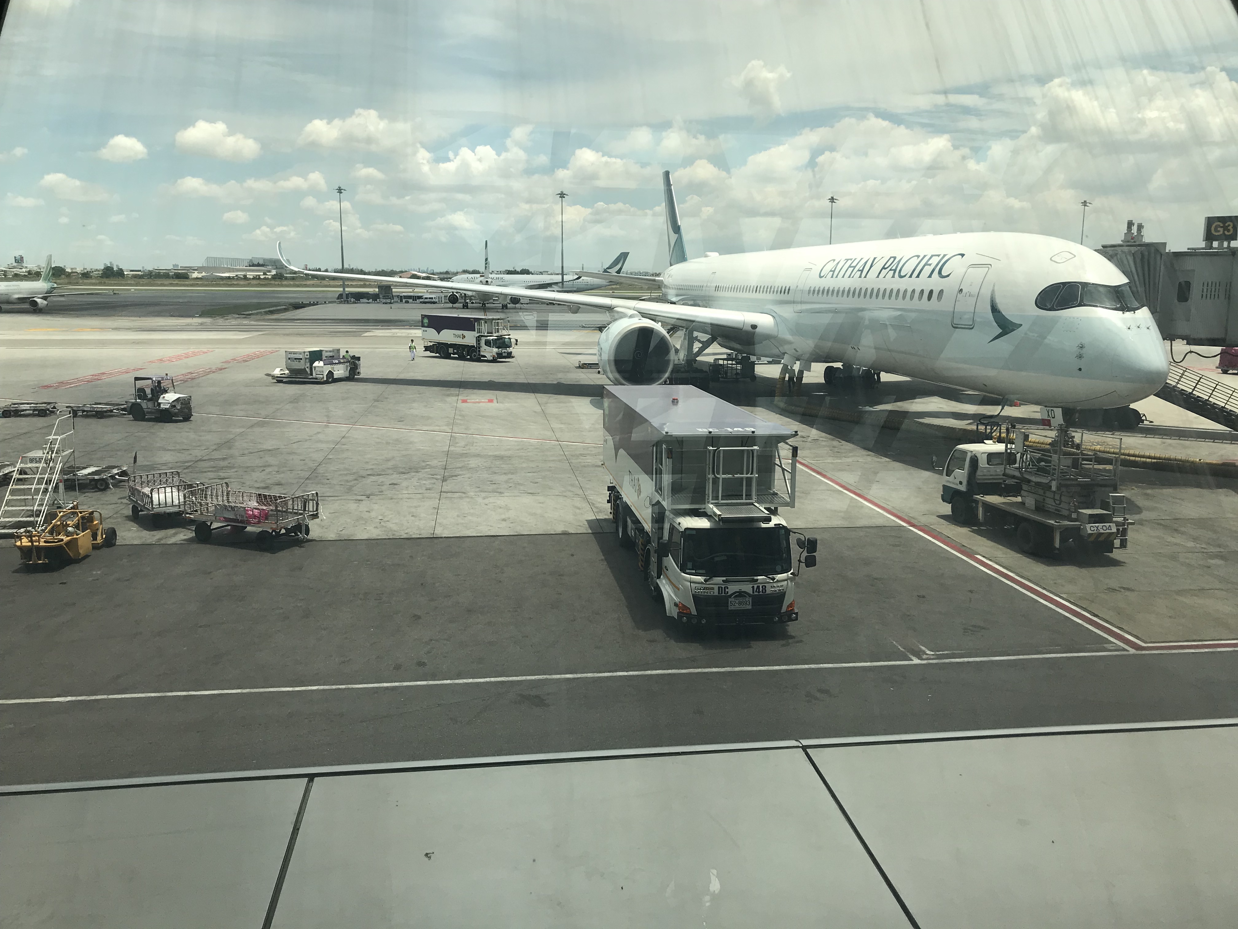 I had a good 2 hours and a half flying Cathay Pacific from Bangkok to Hong Kong. The flight was on-time, the food was adequate and I enjoyed being able to fly a new type: Airbus A350-1000!