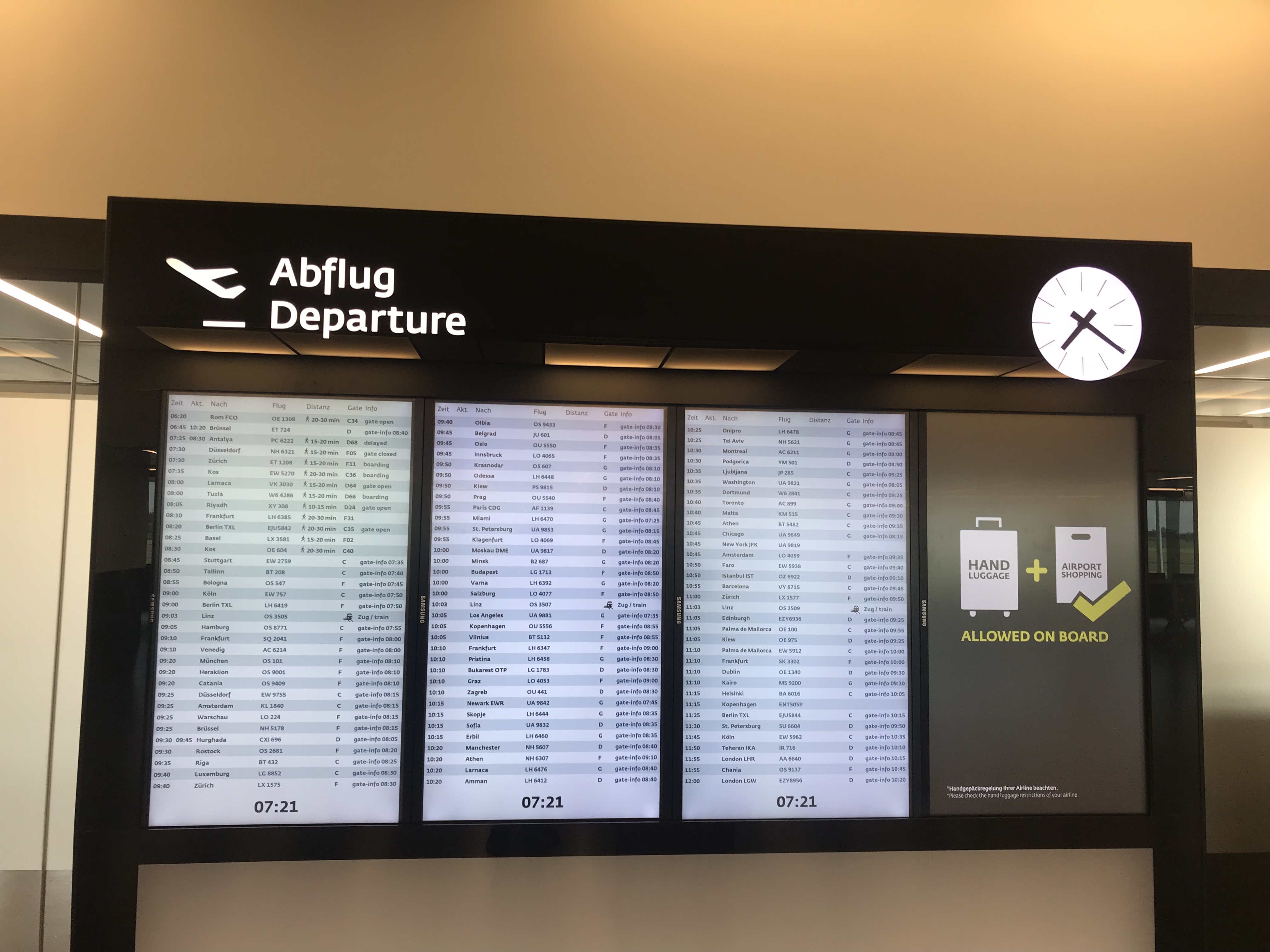Arriving earlier from TG936 at 07:04, we orginally were planning on a three and a half hour transit at Vienna Airport. Boarding pass and luggage were issued and checked through from Bangkok. Since our connection was quite unique, there were no queue at the security check point.