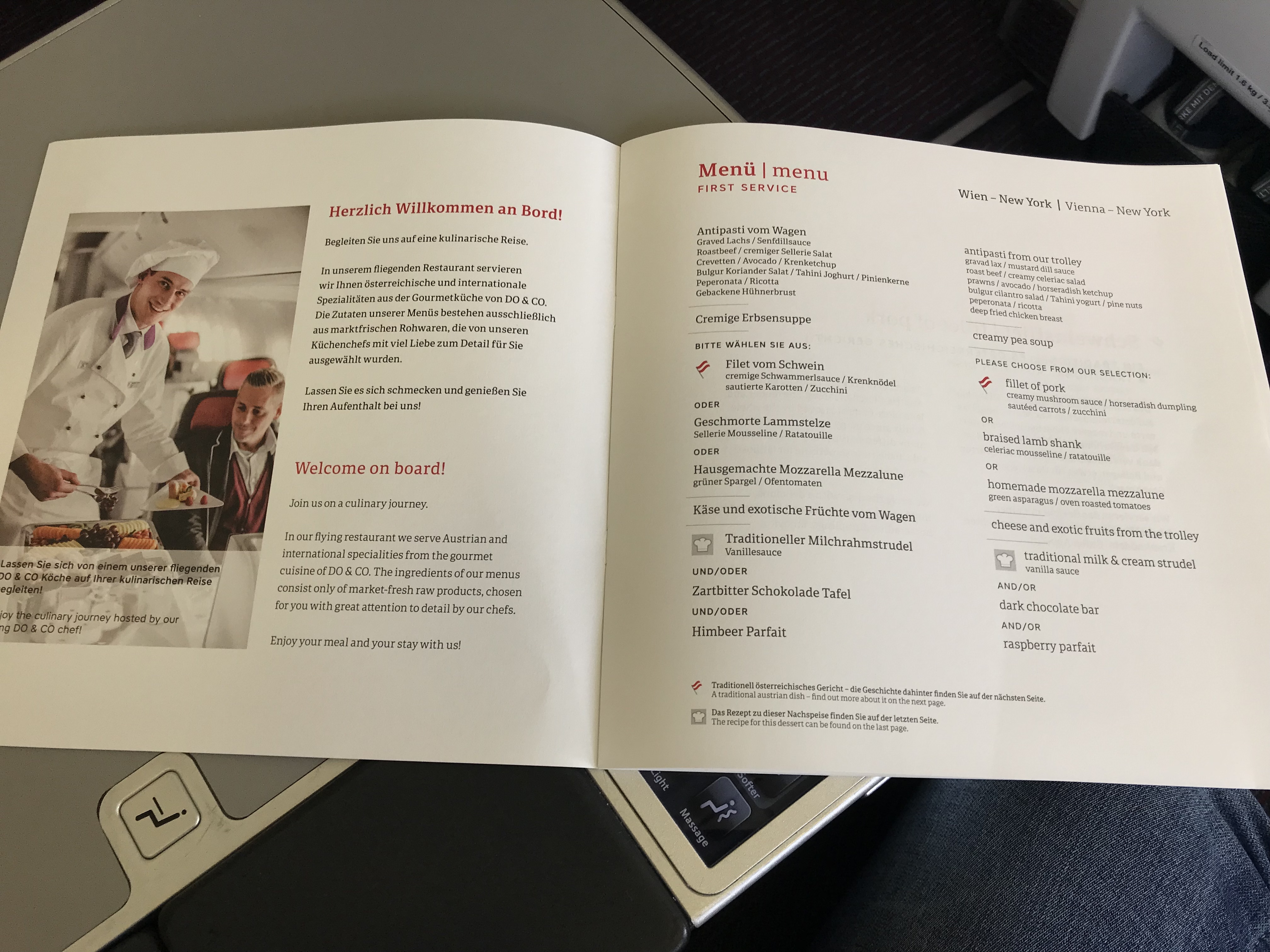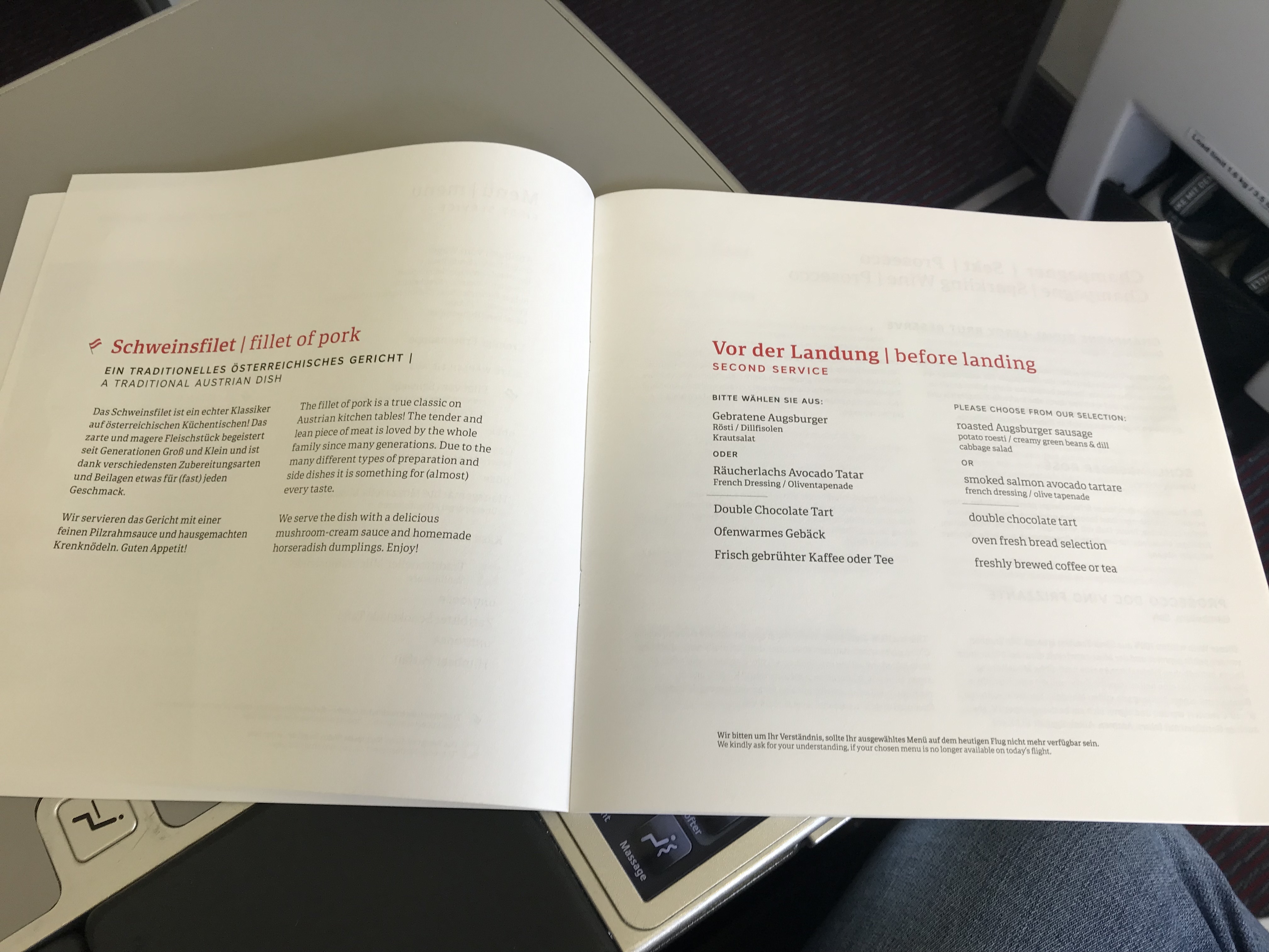 Food was the thing I look forwarded to the most on this flight. Austrian partners with DO&CO – a Gourmet Company for its catering and has a good reputation for its on-board catering and food quality.
